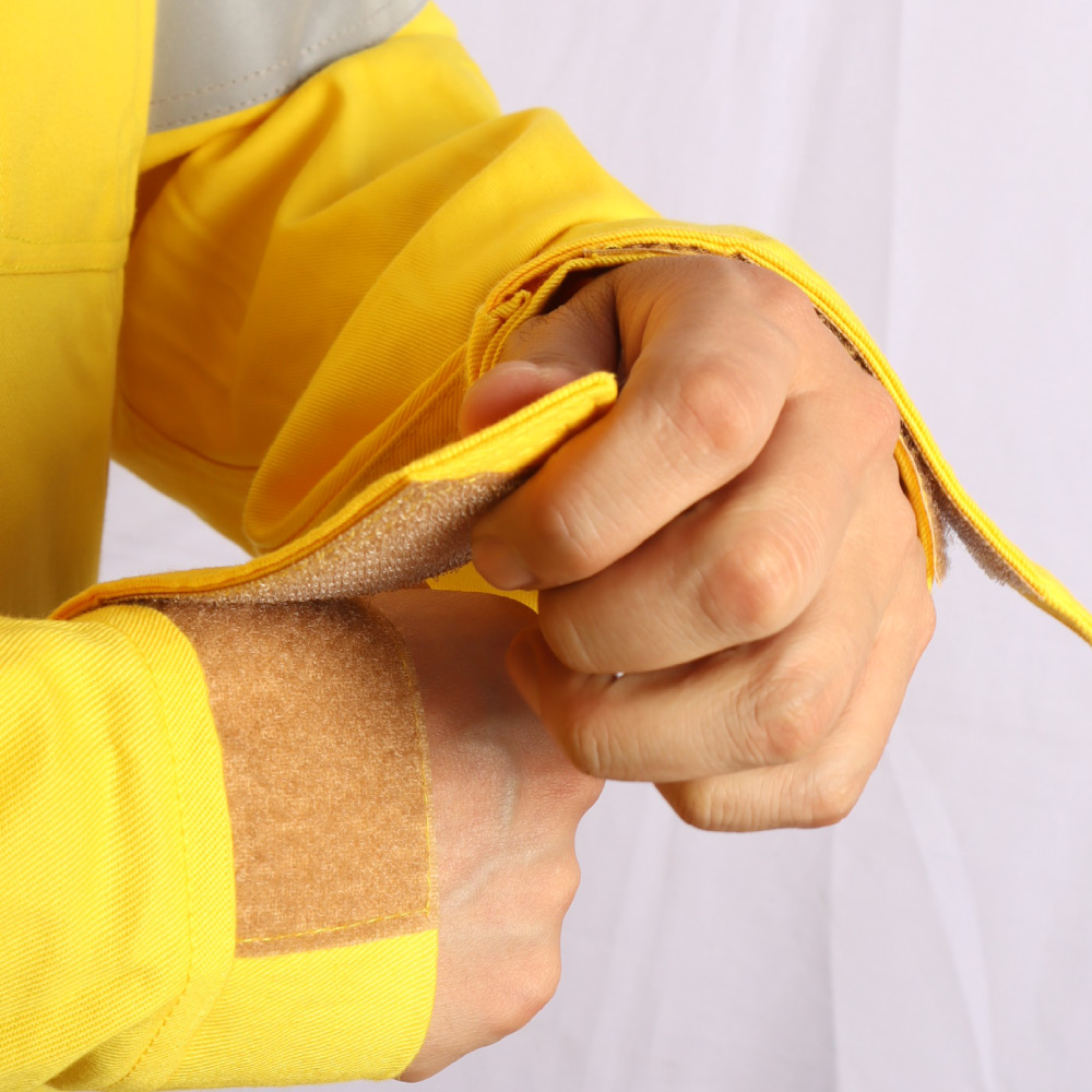 Su diseño ergonómico, con figura curva en torso y espalda, mejora el ajuste al cuerpo sin restringir los movimientos. Incorpora bolsas reforzadas, cuello estructurado, puños con ajuste Velcro® FR y doble costura de seguridad en zonas críticas.