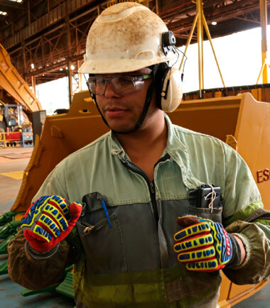 Chaqueta fabricada en telar circular con hilo de poliéster de alta tenacidad. Construcción textil inversa para evitar su torsión durante el uso.