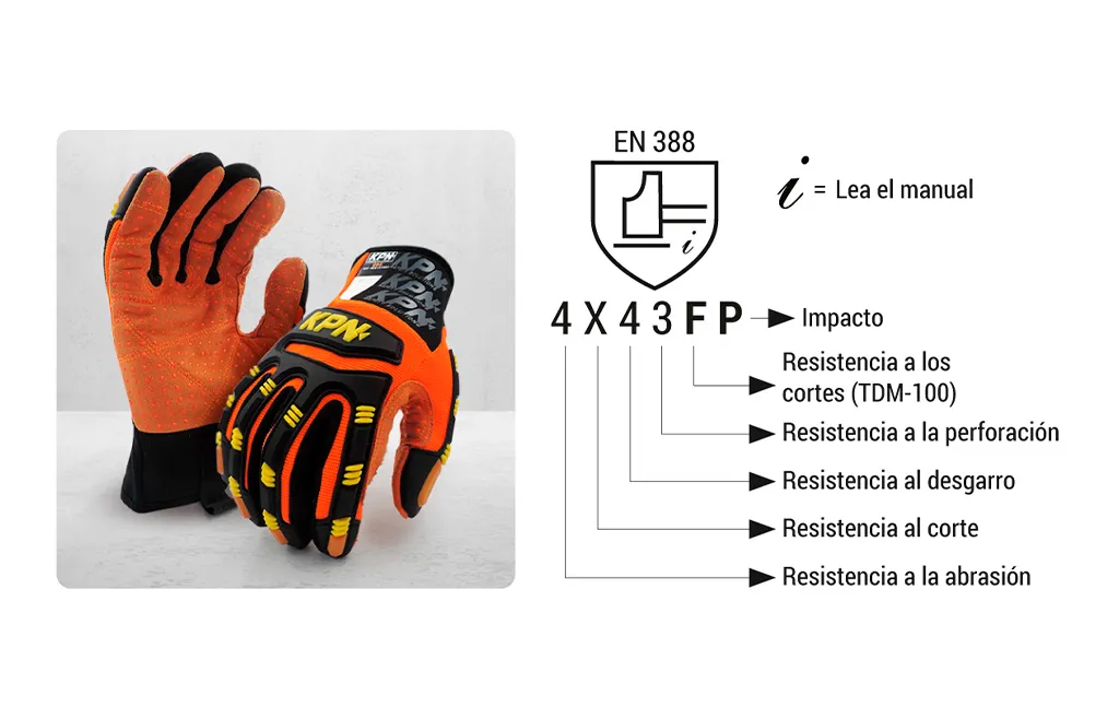 Para estandarizar la calidad y el nivel de resistencia de estos elementos, existe la certificación EN388, una norma europea que clasifica los guantes de riesgo mecánico según su desempeño ante distintos tipos de amenazas.