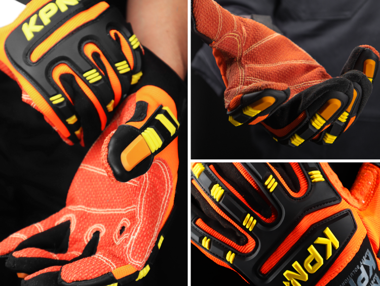 - Guantes anti impacto: Están diseñados para soportar, detener y amortiguar los golpes dirigidos a las manos, gracias a los recubrimientos que tienen en las zonas propensas a los golpes. Los dedos y el anverso quedan protegidos. Estos guantes se usan ampliamente en la minería, construcción e industria pesada.