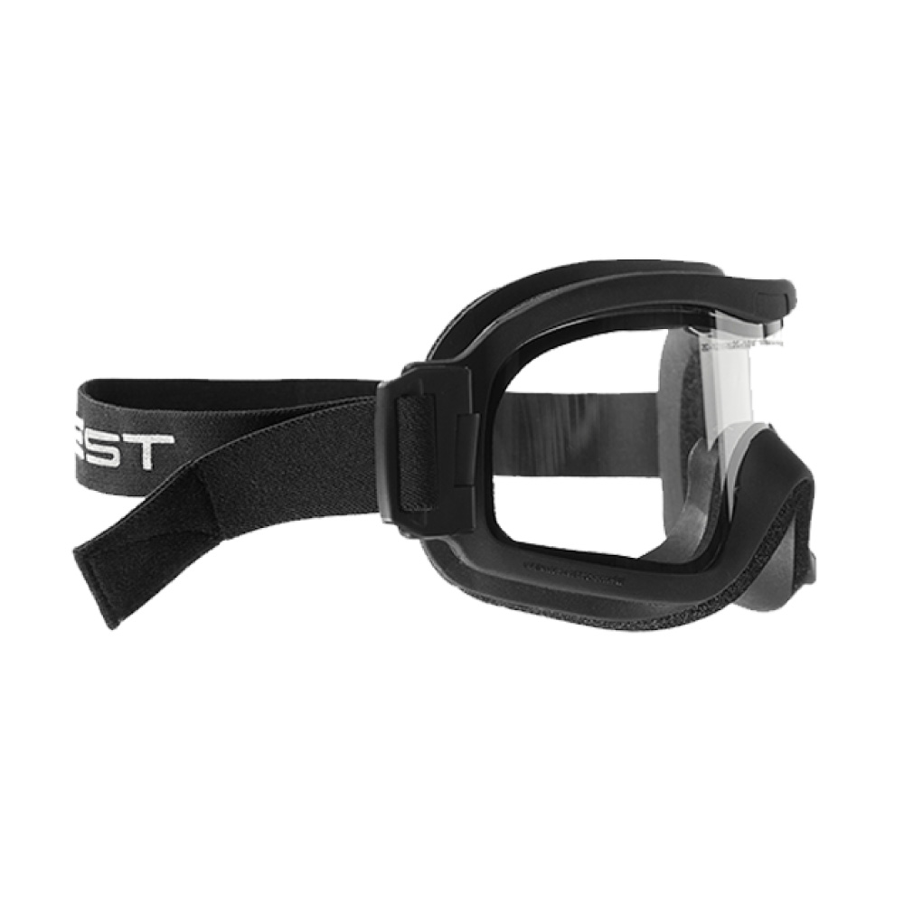Lente de policarbonato doble, exterior antirrayadura e interior antivaho. Todo el material de las gafas es resistente al fuego (banda elástica, montura, lente, etc.). Normativa En 166, EN 14458