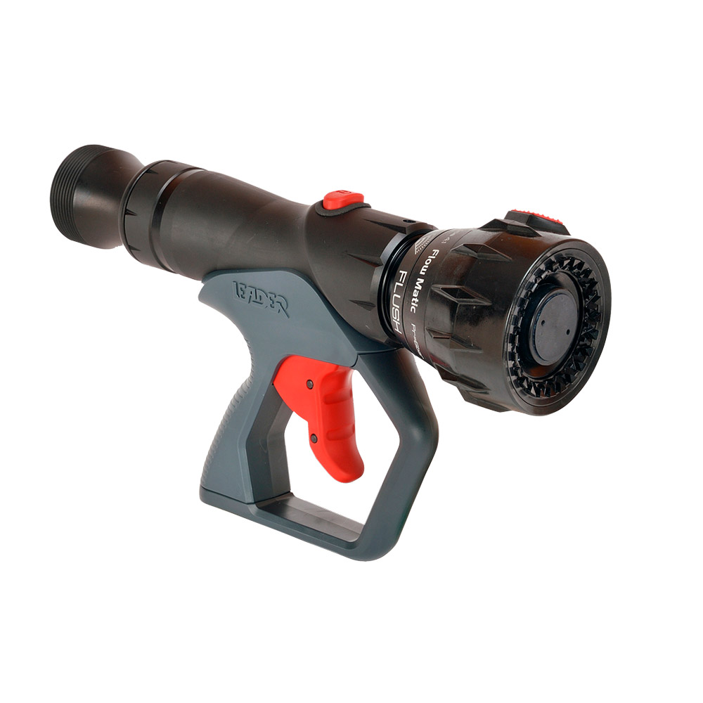El pitón automático con gatillo TRIGGERFLOW Compact es ideal para el impulso. Su diseño la hace más segura, muy intuitiva y más ergonómica. Un completo dominio de la lanza sin necesidad de desplazar las manos. Una mano sujeta la lanza y controla el caudal con la punta de los dedos, la otra mano dirige la forma del chorro al mismo tiempo que participa en el mantenimiento frente a la fuerza de retroceso si procede