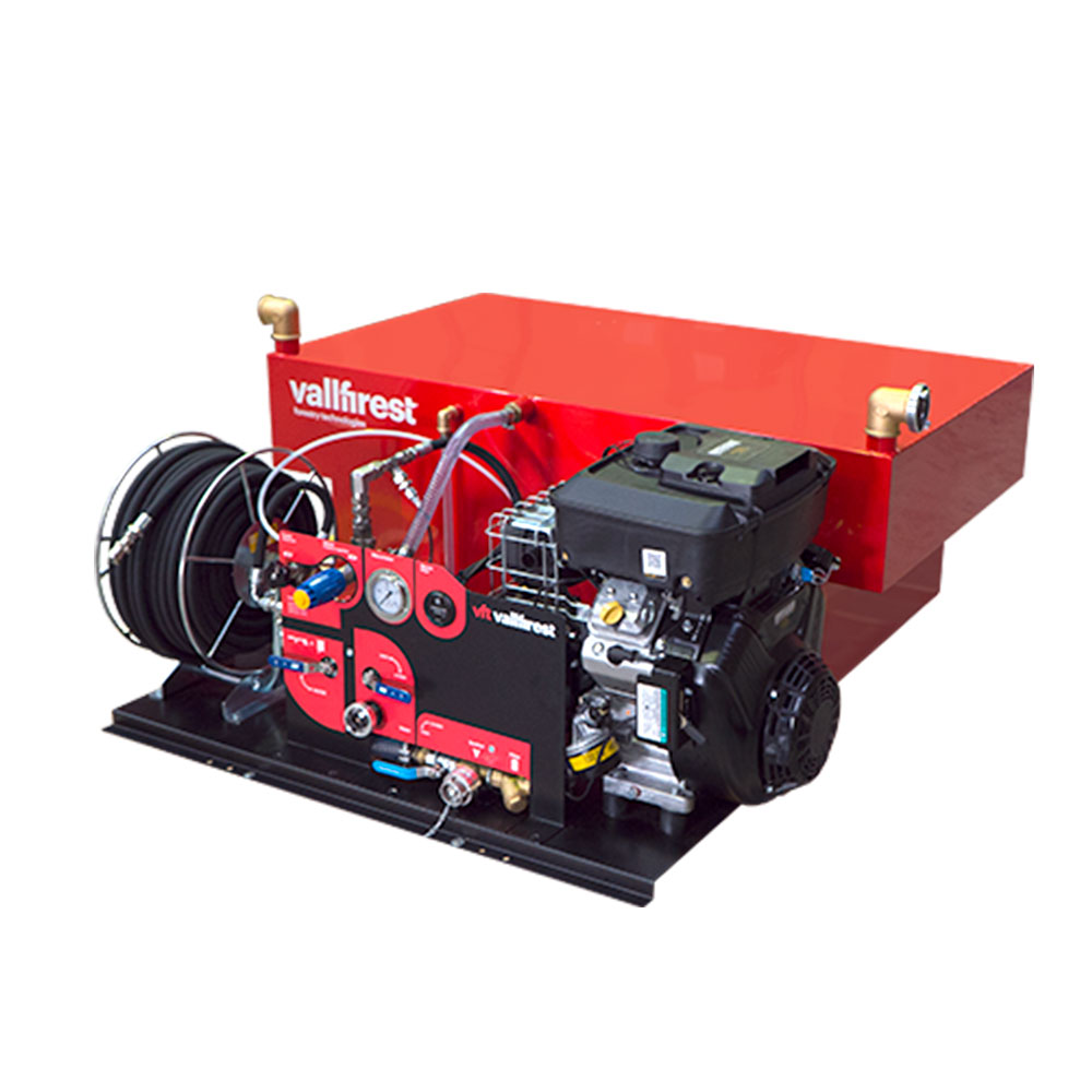 Kits de extinción de intervención rápida diseñados para vehículos pickup y remolques, equipados con bomba de pistón de hasta 100 bar con un caudal máximo de hasta 42 l/min.