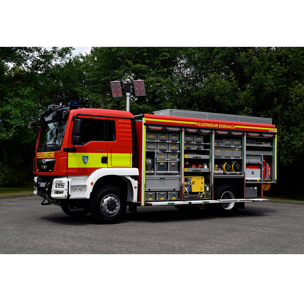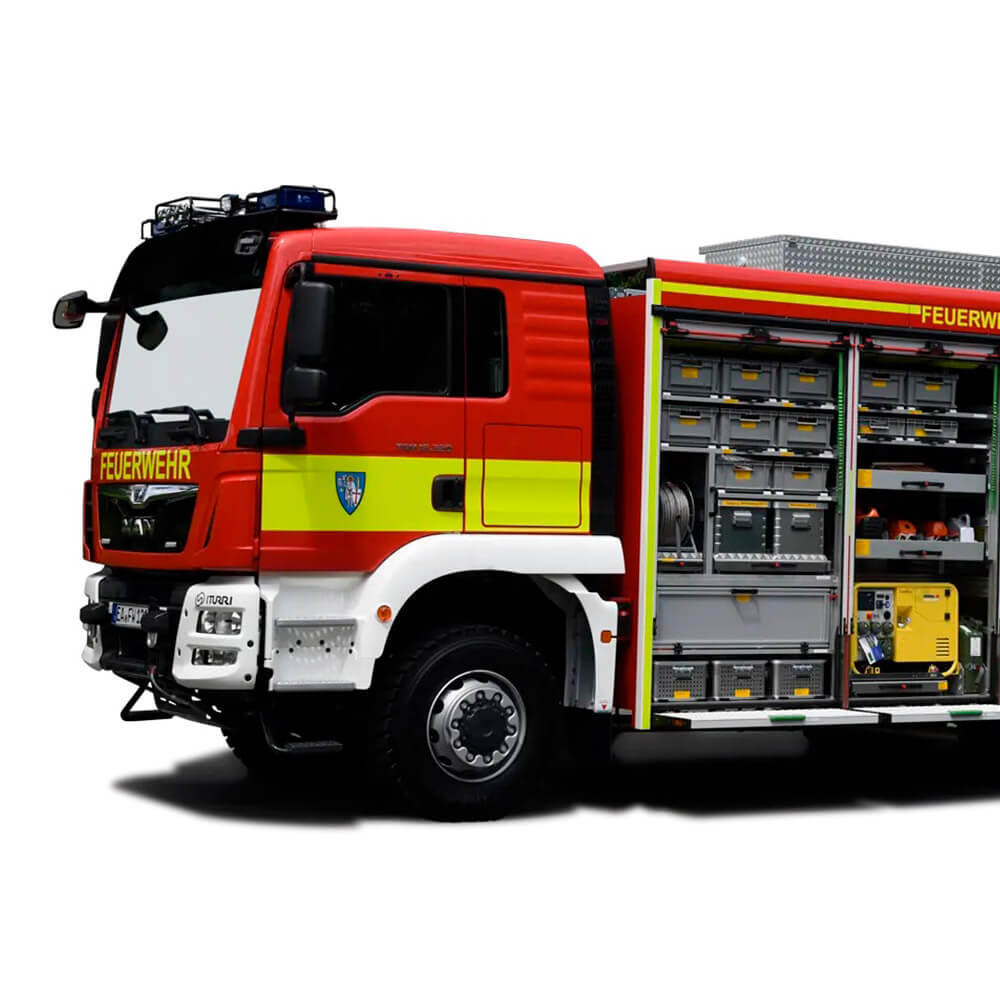 Carrocería de aluminio o Carrocería EcoPolyFire con cisterna de agua integrada y equipo de alta presión.